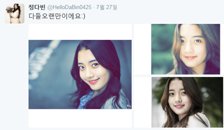 사진 속 정다빈은 어린 시절의 깜찍한 외모를 고스란히 간직하고 있다. 훌쩍 자란 키와 여성스러움을 물씬 풍기는 정다빈의 모습이 눈길을 사로잡는다.