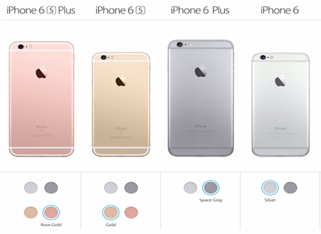 아이폰6S와 6S플러스는 전작 아이폰6 시리즈와 화면 크기는 물론 디자인이 같다. 다만 기존의 골드, 스페이스 그레이, 실버 외에 '로즈 골드' 색상이 추가됐다.
