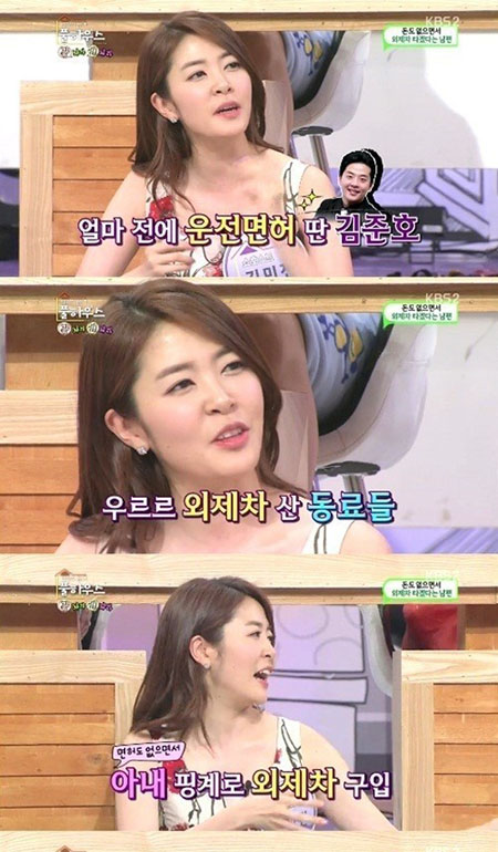 이어 김미진은 "동료 연예인들이 외제차를 사는 시기가 있었는데 분위기에 휩쓸려 규모가 큰 외제차를 덜컥 샀다. 면허가 있던 새언니가 끌고 다니기로 했지만, 언니도 돌아다니는 스타일이 아니라 차를 안 쓰다 보니, 나중에는 녹이 올라오더라"고 폭로했다.