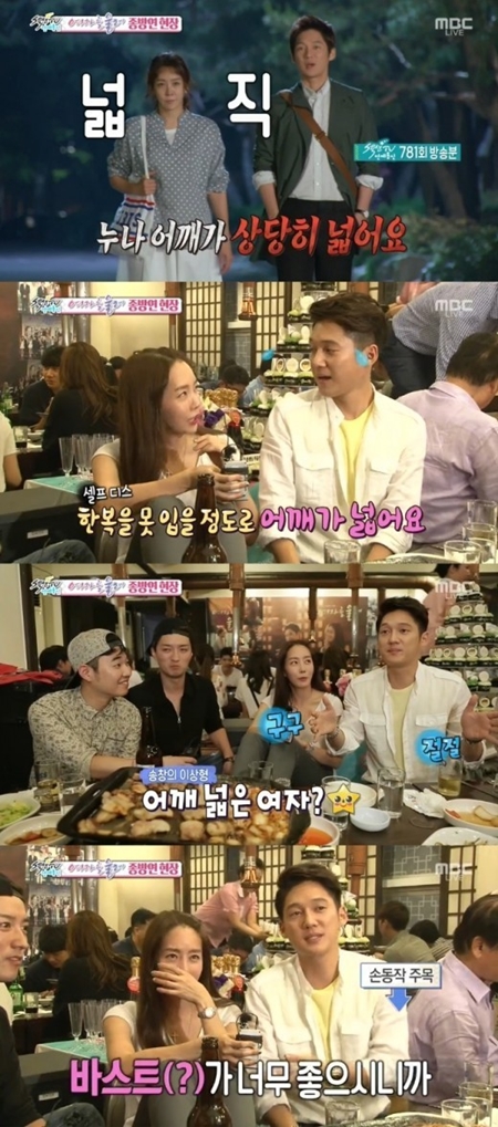 이에 김정은은 "맞다. 어깨가 넓어 한복을 못 입는다"고 스스로 셀프에 나서 웃음을 자아냈다.