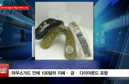 돈자랑을 좋아하는 메이웨더답게 마우스가드 안에 100달러 지폐와 금, 다이아몬드 조각까지 들어갔다고 해 화제가 됐다.