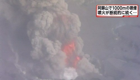 일본 아소산 화산 폭발