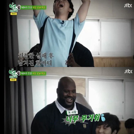 샤킬오닐은 강남과 김정훈을 직접 들어 올려 시선을 사로잡았다. 샤킬오닐에게 안긴 이들의 모습은 한없이 작게 느껴져 웃음을 자아냈다.