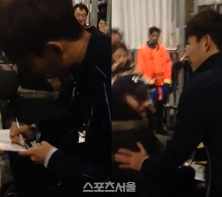 영상 속 손흥민은 휠체어에 앉아 몸이 불편해 보이는 팬을 보고서는 직접 사인을 해주고 경기장을 빠져나가 훈훈함을 자아낸다.