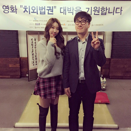 한연수(한승희)는 지난 1월 자신의 인스타그램에 "영화 고사 지내는날 대박기원 신동엽 감독님과"라는 글과 함께 영화 '치외법권' 고사 현장을 공개했다.