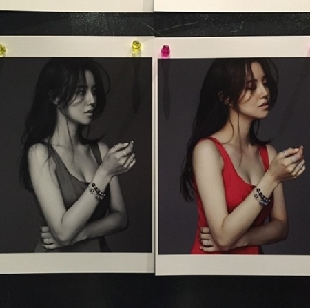 공개된 사진에서 문채원은 긴 생머리에 붉은색 원피스를 입고 가냘픈 몸매를 드러냈다.