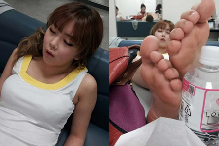 특히 발을 뻗고 잠이 든 조현영은 사진 속에 발가락이 낱낱이 공개돼 굴욕을 맛봐야 했다.