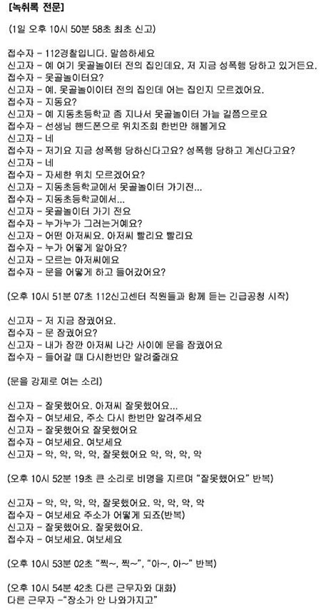 이에 일부 네티즌들은 "성폭행 당하고 있다는데 부부싸움이라니 진짜 답답하다", "출동하기 귀찮았나 보네", "피해자 너무 불쌍해서 울었다", "정확히 네 번이나 말했는데 주소 다시 한번 말해달라니"라며 비난이 일었다.