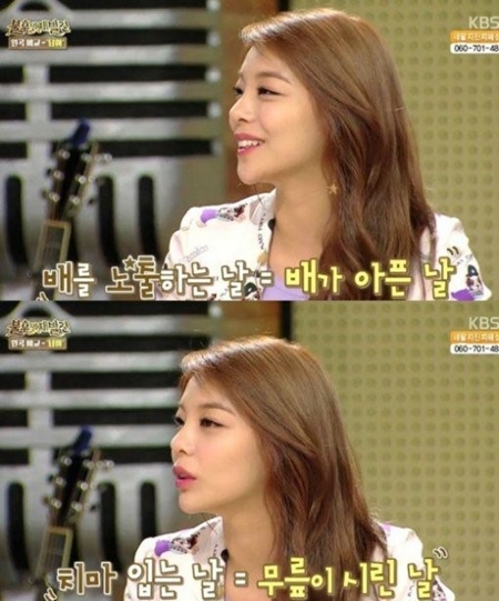 에일리는 "배를 노출하면 배가 아프고 치마를 오래 입으면 무릎이 시리다"라고 고백, 남모를 고충을 털어놨다.