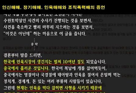 이어 영상 속에는 "한 해 실종자가 수백 명인데 이들이 인육 공급책 조직에 희생된 것일 가능성이 크다"라는 설명도 나온다.