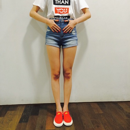 신발을 강조하려는 듯 다리라인을 포인트로 촬영한 이 사진에서 허가윤은 핫팬츠로 길고 쭉뻗은 각선미를 과시해 보는 이들의 시선을 사로잡고 있다.