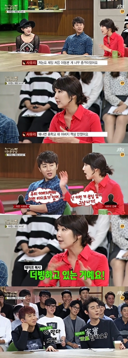 사유리는 "아버지 책상을 보다가 외국 야동을 발견했다. 깜짝 놀라 친오빠에게 이런 비디오가 있다고 말했더니 관심 없다고 나가라고 하더라. 그런데 다음 날 오빠 책상을 봤더니 비디오 복사를 하고 있더라"고 경험을 솔직하게 공개했다.