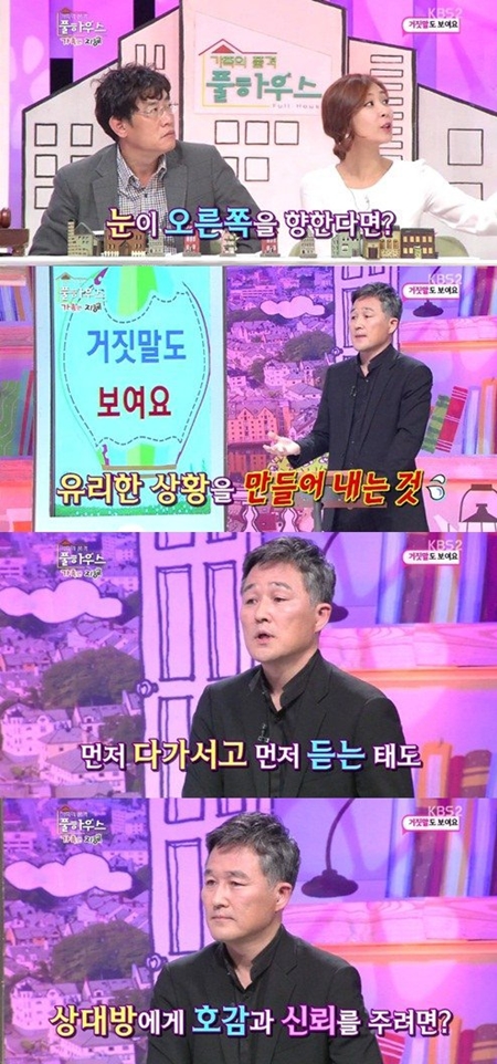 지난해 방송된 KBS 2TV 예능프로그램 '가족의 품격 풀하우스'에서 범죄 프로파일러 표창원 교수는 우리가 어떻게 하면 상대의 거짓말을 알아챌 수 있는지, 실생활에 활용 가능한 심리학 이론 몇 가지를 소개했다.