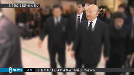지난 1997년 4월 전두환 전 대통령은 내란·반란·뇌물수수죄로 대법원에서 무기징역이 확정됐고, 기업 총수들로부터 받은 돈 가운데 뇌물로 인정된 2205억 원이 추징금으로 정해졌다.