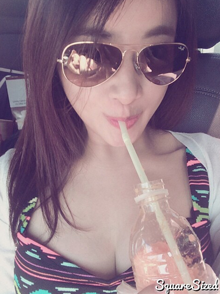 공개된 사진 속 김혜선은 제주도에서 여유로운 휴가를 즐기고 있는 모습으로 선글라스를 낀채 빨대를 입에 물고 한라봉쥬스를 마시고 있는 모습이다.