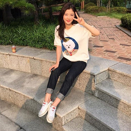 특히 김유정은 롤업 데님 팬츠에 스니커즈를 매치한 캐주얼 스타일링으로 산책 패션을 뽐내 눈길을 끌었다.