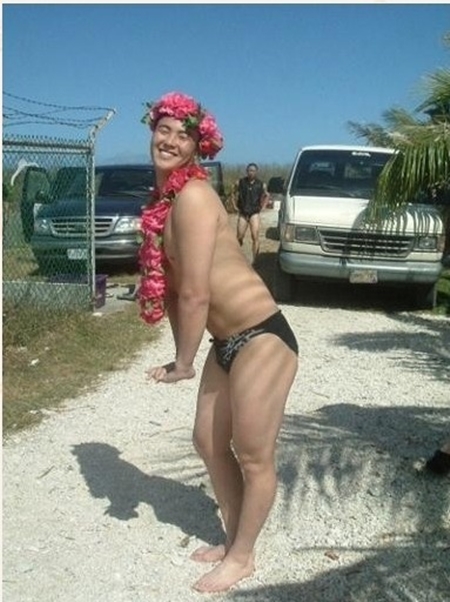 공개된 사진 속 안지만은 수영복만 입은 채 꽃관과 꽃 목걸이를 착용하고 깜찍한 포즈를 취하고 있다.