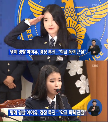 이날 임용식에서는 아이유는 순경에서 경장으로 특별승진했다. 경찰 제복을 입고 등장한 아이유는 위촉장을 받은 뒤 거수경례까지 해 눈길을 끌었다.