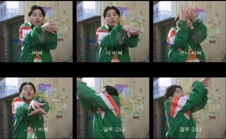 "뱀처럼 알지. 스네이크 만나~ 자연스럽게, 되겠지. 자연스럽게 막 섞여. 그럼 하나가 되는 거지. 비벼 막 비벼 XX 비벼! XX 비벼 뒤로 갔다 앞으로 갔다 XX 비벼"