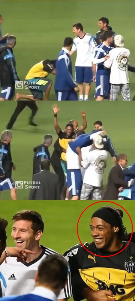 지난 13일(이하 현지시간) 동영상 사이트 '유튜브'에는 '호나우지뉴 닮은 꼴이 훈련 중인 메시에게 난입했다'라는 제목으로 한 편의 영상이 게재됐다.