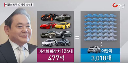 이 회장이 구체적으로 어떤 모델의 차를 몇 대나 보유하고 있는지와 차량 등록 가격이 공개된 것은 이번이 처음이다.