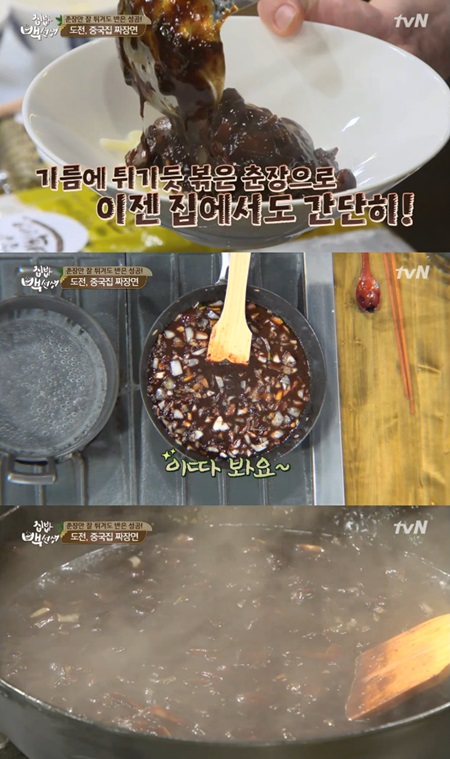 이어 짜장 향을 내기 위해서 파 기름에 간장 한 큰 술을 넣었고, 이렇게 만들어진 기름에 양파를 넣고 볶아준 후 양배추를 넣었다. 채소가 볶아지면 설탕과 춘장을 조금씩 섞었다. 특히 백종원은 춘장을 튀기는 게 비범이라고 알려주면서 시범을 보여 눈길을 끌었다.