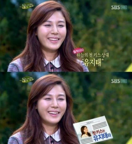 그러자 MC들이 "그렇다면 유지태 씨가 첫 키스 상대입니까?"라고 묻자 김하늘은 "그렇다. 지금 생각해보니 억울하다"라고 고백해 웃음을 자아냈다.