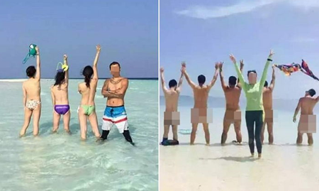 실제 이들이 찍은 사진에는 해변을 배경 삼아 수영복을 과감히 벗어 던지고 아무것도 걸치지 않은 채 포즈를 취하고 있는 커플들의 모습이 담겼다.