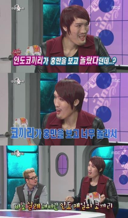 당시 방송에서 최홍만은 MC들이 "인도 코끼리가 최홍만 보고 놀랐다는데?"라고 묻자 "인도에서 가장 큰 코끼리를 섭외했는데 나를 보고 놀라서 오줌을 쌌다"면서 "그러니 조련사가 '괜찮아, 사람이야'라고 하며 진정시켰다"라고 말해 웃음을 자아냈다.