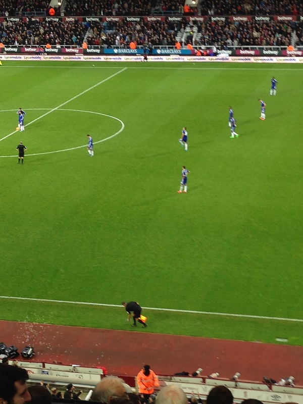 그리고 웨스트햄의 선제골이 터졌습니다. 제 양옆에 앉았던 중국, 일본에서 온 기자들이(이후 첼시의 동점골 상황에서 둘 다 'Yes'!를 외친 것을 볼 때 첼시 팬이 분명합니다!) 한숨을 쉬는 가운데 제 눈에 가장 명백하게 다가왔던 것은 이미 전의를 잃은 듯한 첼시 선수들의 모습이었습니다. 경기 속행을 위해 터치라인에 모여드는 첼시 선수들은 대부분이 뒷짐을 지거나 고개를 푹 숙인채 벌써부터 심적으로, 체력적으로 지쳐보였고 누구하나 서로에게 괜찮다고 격려하는 선수가 없었습니다.