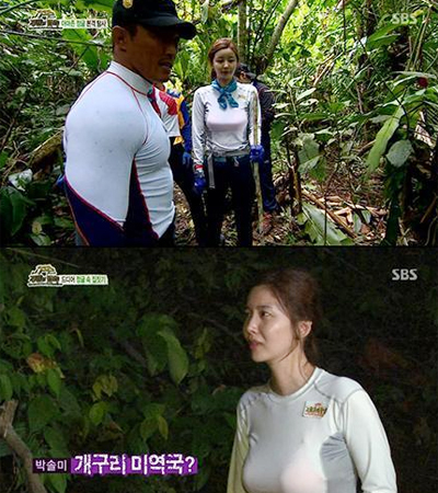 이날 방송에서 박솔미는 몸에 밀착되는 화이트 색상의 트레이닝복을 입고 등장해 시선을 사로잡았다. 당시 박솔미는 얇은 의상 탓에 볼륨감 넘치는 몸매가 고스란히 드러나 눈길을 끌었다.