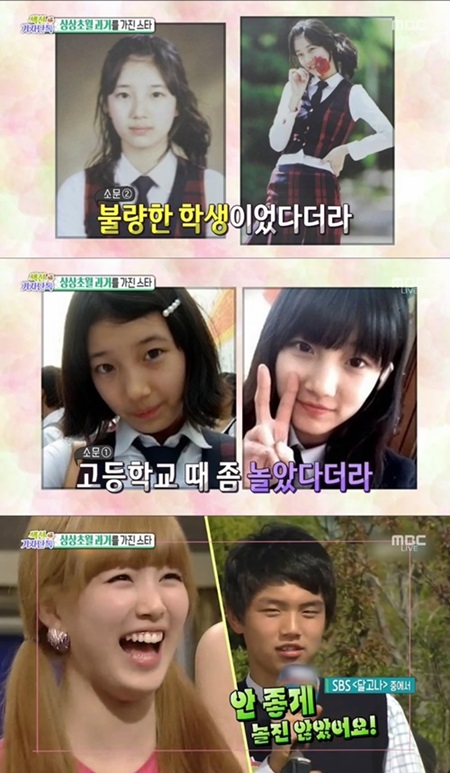 이날 방송에서는 수지의 남동생이 최근 한 방송에 출연해 "우리 누나가 논 건 맞다. 공부를 안 한 건 맞지만 안 좋게 논 적은 없다"고 말했다. 이에 대해 수지 역시 "논 건 맞지만 안 좋게 놀지 않았다"고 밝힌 바 있다.