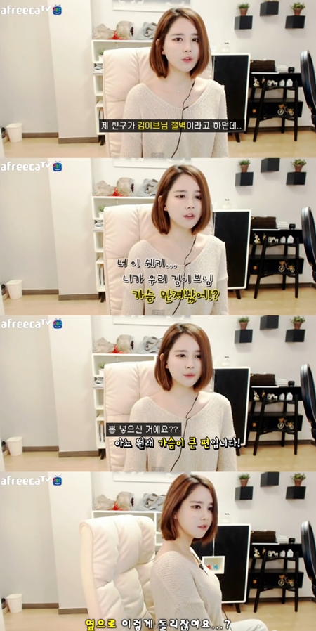 [스포츠서울] 실시간 인터넷 방송 '아프리카 TV' BJ 김이브가 자신의 가슴사이즈에 대한 네티즌 발언에 발끈했다.