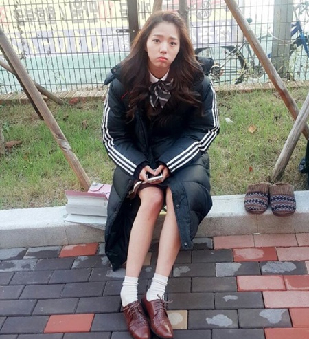 교복 위에 긴 패딩을 입으면서 잠시 추위를 피하고 있는 채수빈은 젓가락 각선미와 함께 귀여운 표정으로 보는 이들의 시선을 사로잡고 있다.