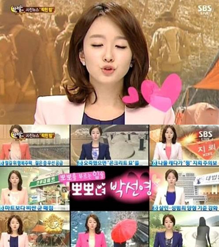 지난 2013년 방송된 SBS '한밤의 TV연예'에서는 당시 SBS '8시 뉴스'를 진행하던 박선영 아나운서의 사진을 공개하며 그의 별명인 '뽀뽀녀'에 대해 언급했다.