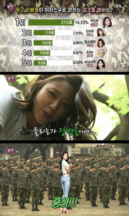 지난 9월 방송된 SBS '한밤의 TV연예'에서는 군인들이 좋아하는 걸그룹 멤버를 뽑는 모습이 그려졌다.