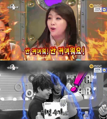 민아는 "장담하는데 안 귀엽다"고 하고는 사진을 먼저 확인해보겠다며 규현이 있는 곳으로 달려왔다. 사진을 본 민아는 "진짜 안 된다"며 공개를 반대했고, 결국 걸그룹 보호 차원에서 비공개로 하기로 했다.