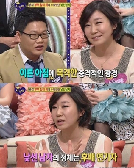 이에 라미란은 "사정이 있었다. 그 낯선 남자는 후배 연기자였는데 술자리가 길어져 집에서 먹다보니 그렇게 됐다. 그 후배 말고 3명이 더 있었는데 나머지 후배들은 딸 유치원 배웅해주러 가서 그 남자 후배 혼자만 남았다"고 덧붙였다.