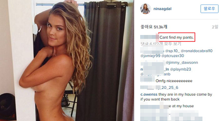 보도에 따르면 니나 아그달은 이날 자신의 SNS를 통해 '속옷을 찾을 수 없다'는 글과 함께 알몸 사진 한 장을 게재했다.