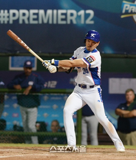 오재원은 19일 일본 도쿄돔에서 열린 '2015 WBSC 프리미어12'에서 9회초 양의지를 대신해 대타로 나섰다.