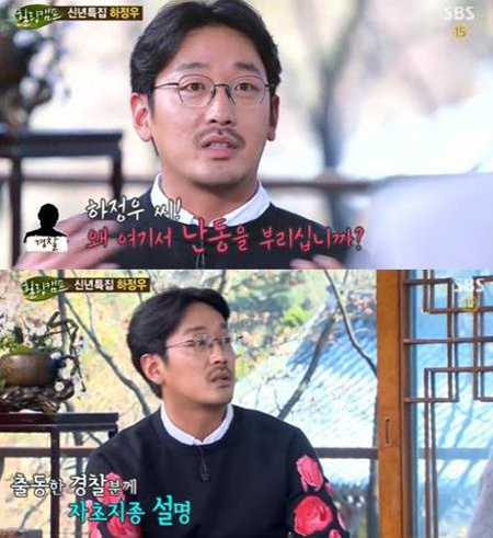 계속해서 하정우는 "내리라고 했는데 안 내려서 우산으로 차를 내려쳤다. 차주는 끝까지 차 안에서 안 내렸다"면서 "조금 있다가 경찰이 왔는데 '하정우 씨 왜 여기서 난동을 부리시냐"고 물어봐서 자초지종을 설명했다. 결국 경찰이 연행해서 강남결찰서로 갔다. 음주운전이었다"라고 설명했다.