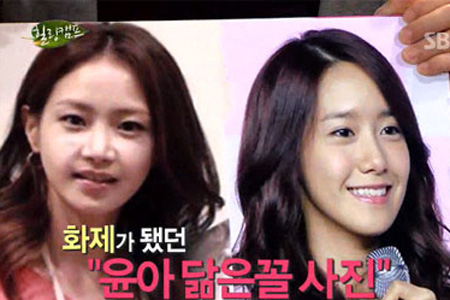 이날 방송에서 MC 김제동이 신은경 윤아 닮은꼴 사진을 공개하며 "소녀시대 윤아를 닮았다는 말이 많았다"고 말하자 신은경은 "내 얼굴이 저러냐?"며 이내 "(사진 보정) 작업한 거다"라고 쿨하게 해명했다.