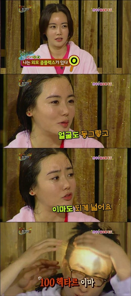 이날 황우슬혜는 갑자기 던져진 질문에 "그렇다"며 "얼굴이 동그랗고 이마도 되게 넓다"고 말해 MC들에게 야유를 받았다. 79년생인 황우슬혜는 나이에 비해 동안미녀로 유명하기 때문이다.