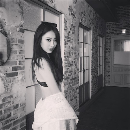 공개된 사진에는 속옷만 입은 채 하얀 겉옷을 반쯤 걸친 경리의 뒷모습이 담겨 있다.