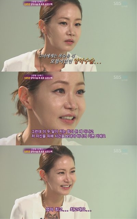 그동안 한쪽 눈 실명과 이혼, 아들의 뇌수종 진단 등 어려운 시간들을 겪었던 신은경은 "아들이 아팠을 때가 가장 힘들었다. 지금은 잘 이겨냈고 지금 생각해보면 힘들다는 게 어느 정도인지 가늠하지 모르실거다"고 속마음을 털어놨다.