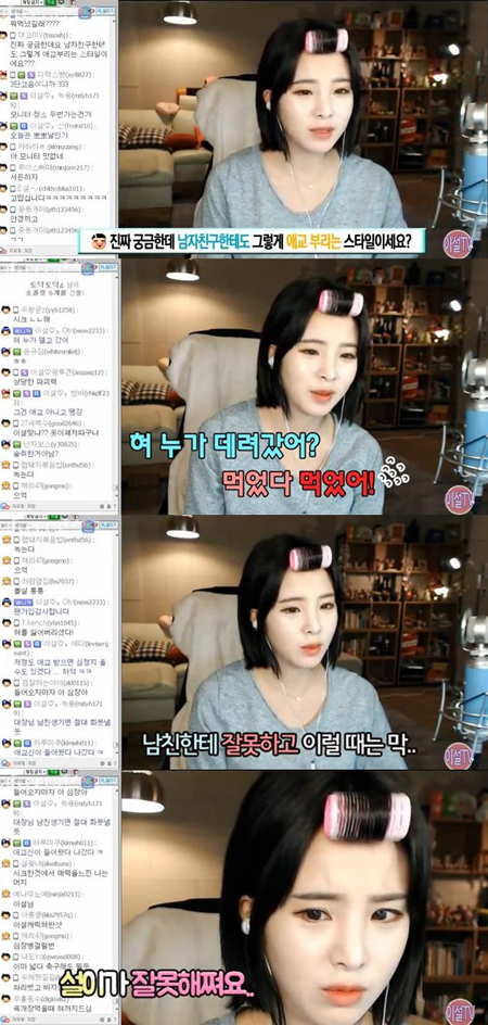 또한 BJ이설은 '애교가 어느 때 많냐'는 질문에는 "남자친구한테 잘못하고 이럴 때는"이라며 "잘못해쪄요. 잘못했어요"라는 혀 짧은 소리로 귀여움을 자아냈다.