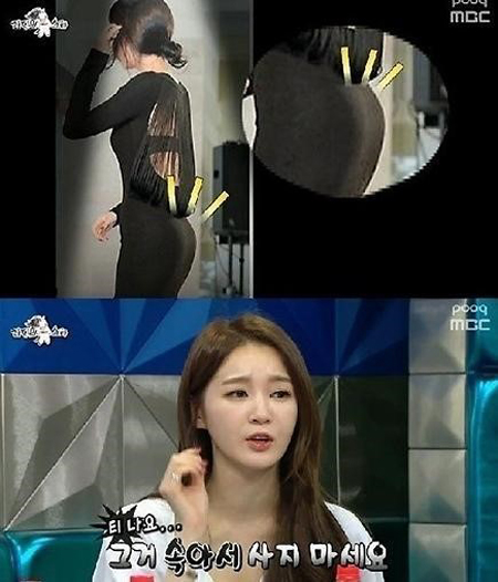 지난해 5월 방송된 MBC ‘황금어장 라디오스타’에서 강민경이 ‘엉뽕 굴욕 사건’을 해명했다.