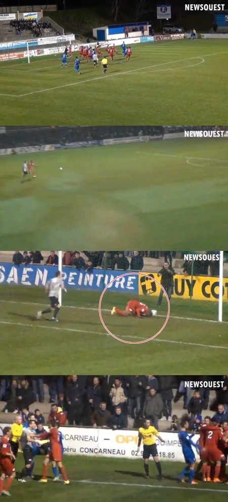 이날 샤토브리앙의 골키퍼가 경기 막판 1-0으로 뒤지고 있는 상황을 만회하기 위해 공격에 나선 상황에서 문제가 야기됐다.