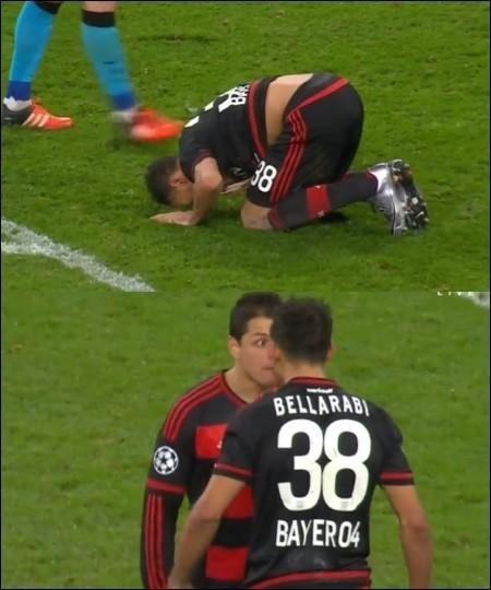 [스포츠서울] 독일 분데스리가 레버쿠젠에서 한솥밥을 먹고 있는 카림 벨라라비와 '치차리토' 하비에르 에르난데스가 경기 도중 충돌했다.