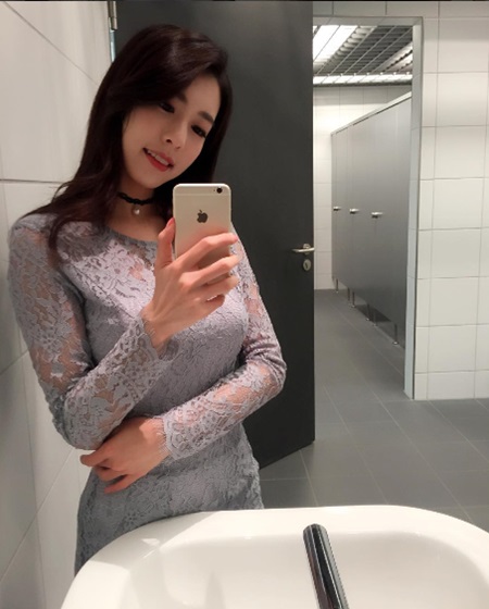 공개된 사진 속에는 화장실에서 거울을 이용해 자신의 모습을 셀프카메라로 촬영 중인 조은정 아나운서의 모습이 담겼다.